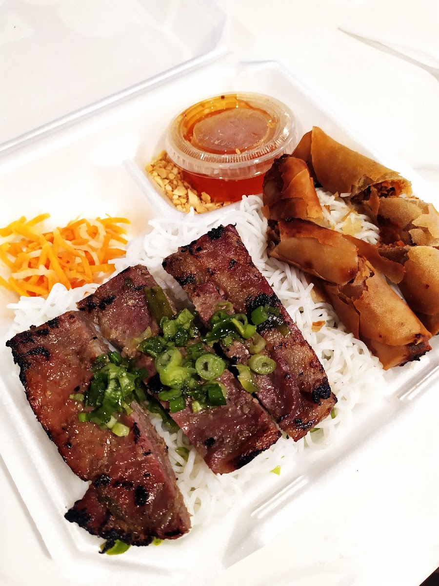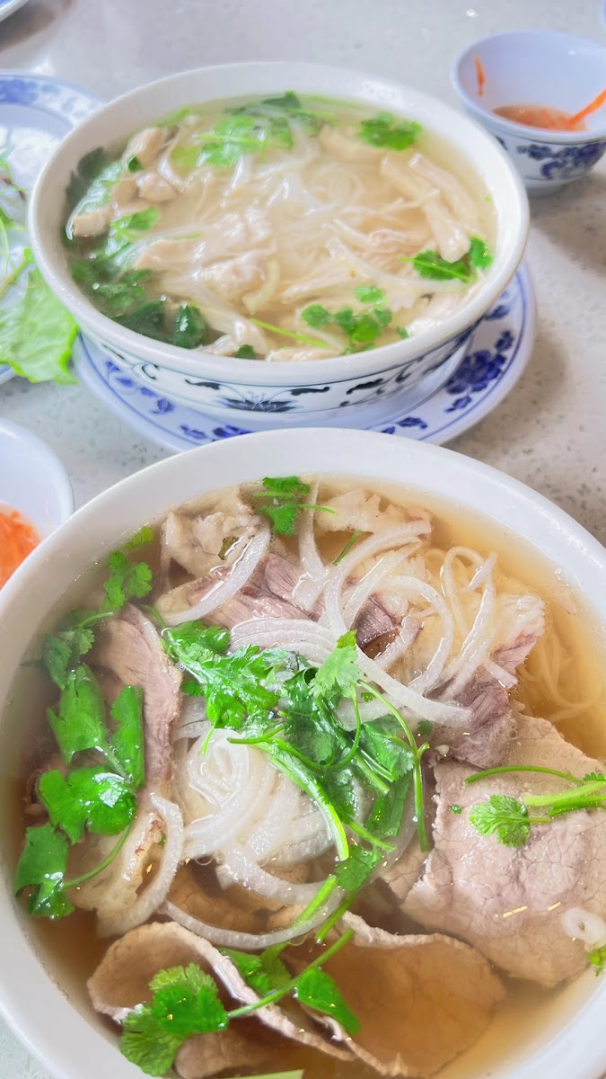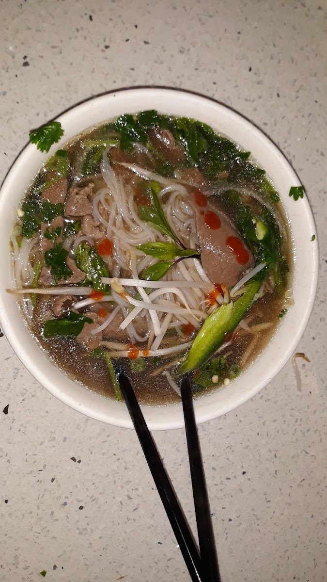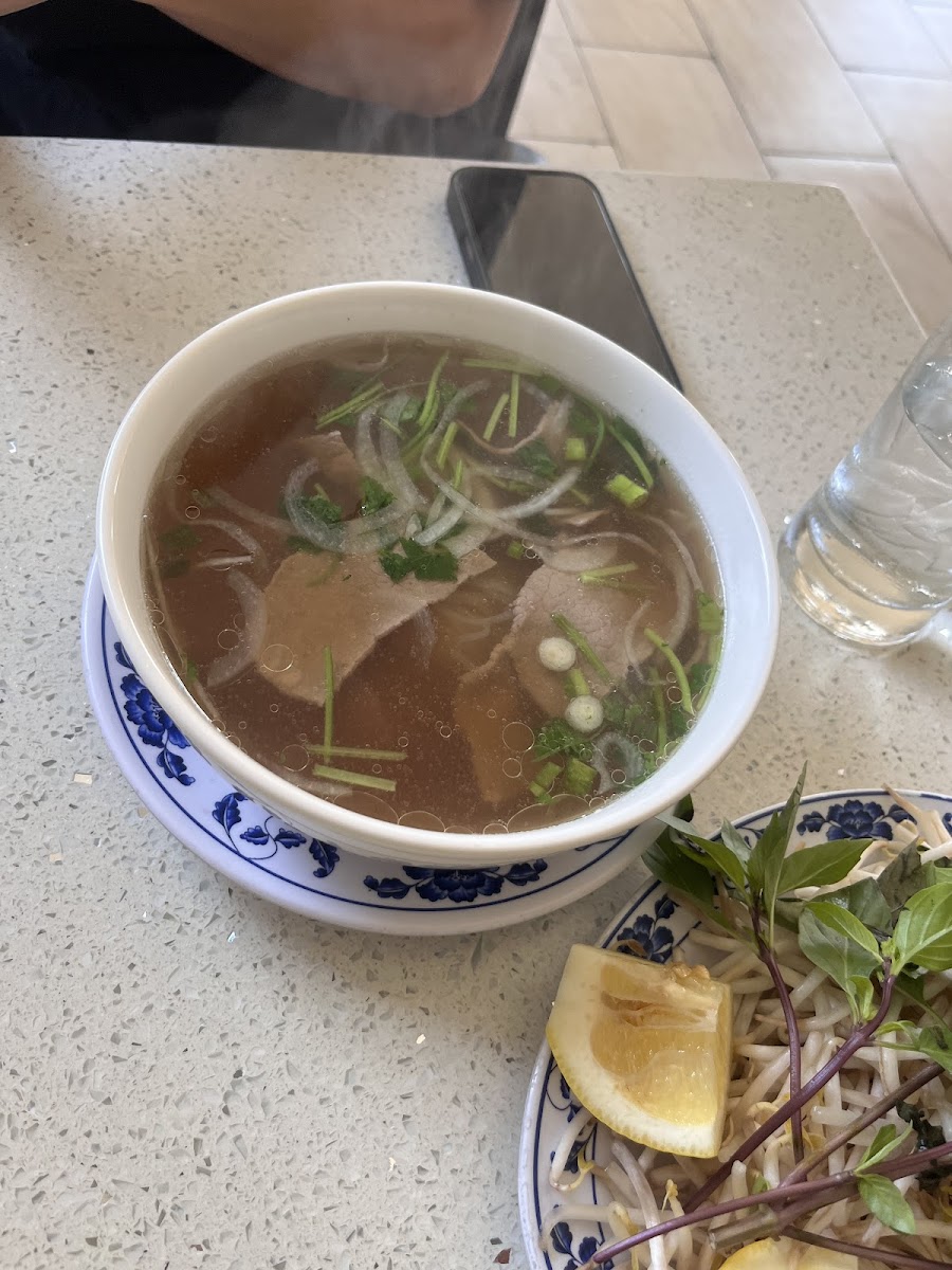The restaurant’s menu leans heavily into traditional pho varieties, with options that include rare steak, brisket, tendon, and even vegetarian pho chay dau hu. Alongside pho, the vermicelli bowls and rice plates stand out as well, with offerings like vermicelli with BBQ pork and egg rolls providing a solid variety for those seeking something beyond the soup. Beverages such as Thai tea boba and Vietnamese coffee add a familiar touch for fans of authentic flavors.